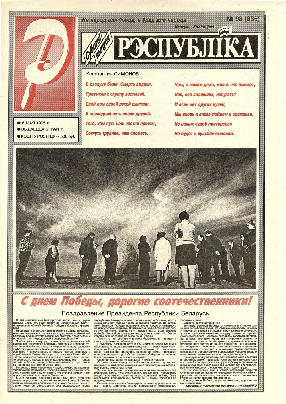 «Рэспубліка» — газета для тых, хто самастойна прымае рашэнні. Заснавальнік - Савет Міністраў Рэспублікі Беларусь. Выдаецца з чэрвеня 1991. Газета выходзіць 250 разоў у год. Аўтары апублікаваных матэрыялаў нясуць адказнасць за падбор і дакладнасць фактаў, іх меркаванні неабавязкова адлюстроўваюць пункт гледжання рэдакцыі. Рукапісы, фотаздымкі і малюнкі не рэцэнзуюцца і не вяртаюцца.