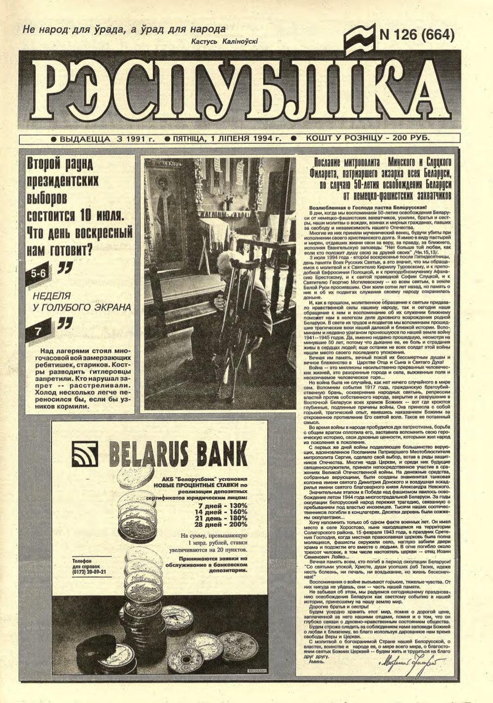 «Рэспубліка» — газета для тых, хто самастойна прымае рашэнні. Заснавальнік - Савет Міністраў Рэспублікі Беларусь. Выдаецца з чэрвеня 1991. Газета выходзіць 250 разоў у год. Аўтары апублікаваных матэрыялаў нясуць адказнасць за падбор і дакладнасць фактаў, іх меркаванні неабавязкова адлюстроўваюць пункт гледжання рэдакцыі. Рукапісы, фотаздымкі і малюнкі не рэцэнзуюцца I не вяртаюцца.