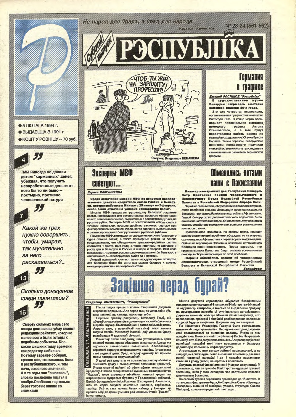 «Рэспубліка» — газета для тых, хто самастойна прымае рашэнні. Заснавальнік - Савет Міністраў Рэспублікі Беларусь. Выдаецца з чэрвеня 1991. Газета выходзіць 250 разоў у год. Аўтары апублікаваных матэрыялаў нясуць адказнасць за падбор і дакладнасць фактаў, іх меркаванні неабавязкова адлюстроўваюць пункт гледжання рэдакцыі. Рукапісы, фотаздымкі і малюнкі не рэцэнзуюцца I не вяртаюцца.