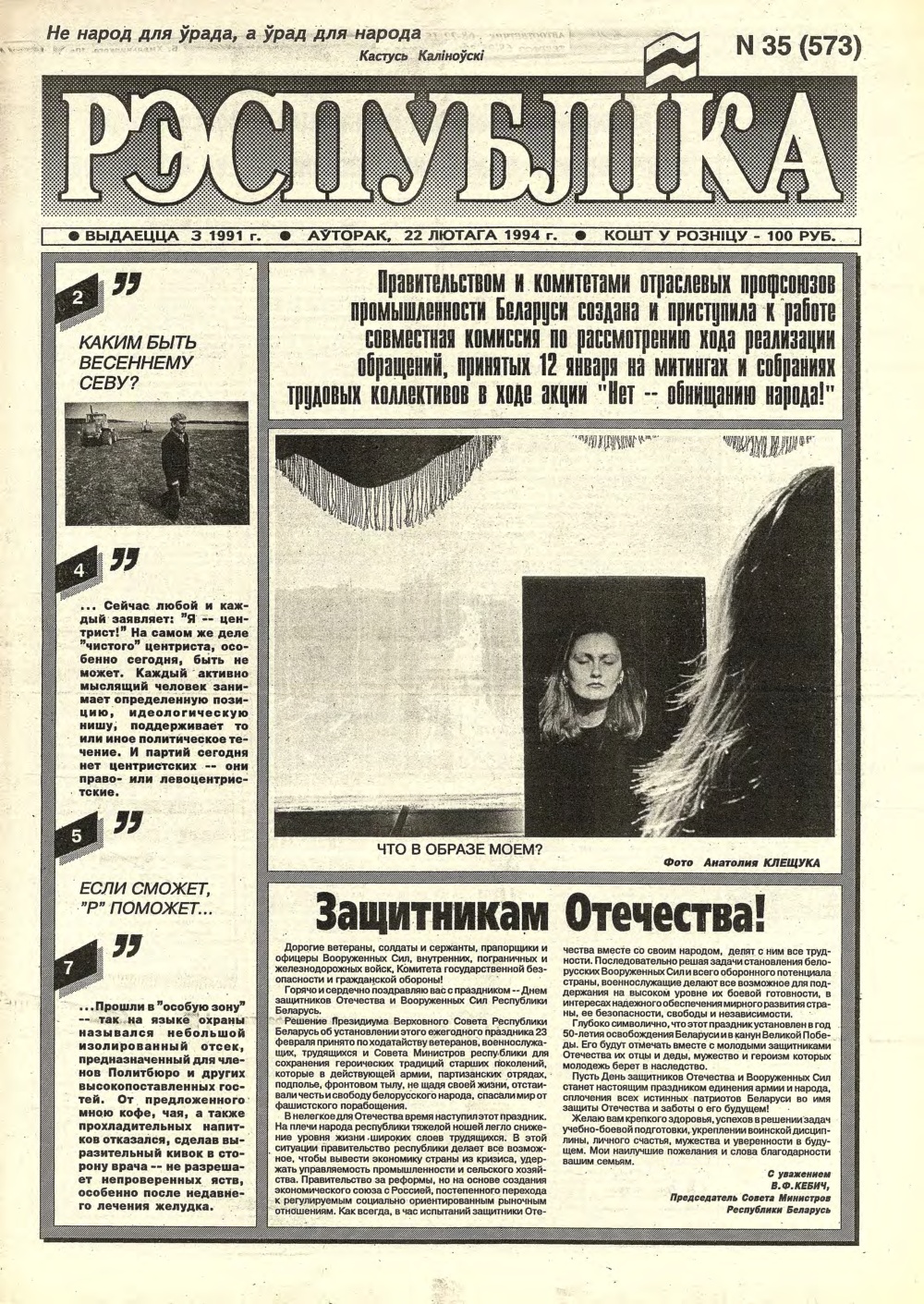 «Рэспубліка» — газета для тых, хто самастойна прымае рашэнні. Заснавальнік - Савет Міністраў Рэспублікі Беларусь. Выдаецца з чэрвеня 1991. Газета выходзіць 250 разоў у год. Аўтары апублікаваных матэрыялаў нясуць адказнасць за падбор і дакладнасць фактаў, іх меркаванні неабавязкова адлюстроўваюць пункт гледжання рэдакцыі. Рукапісы, фотаздымкі і малюнкі не рэцэнзуюцца I не вяртаюцца.