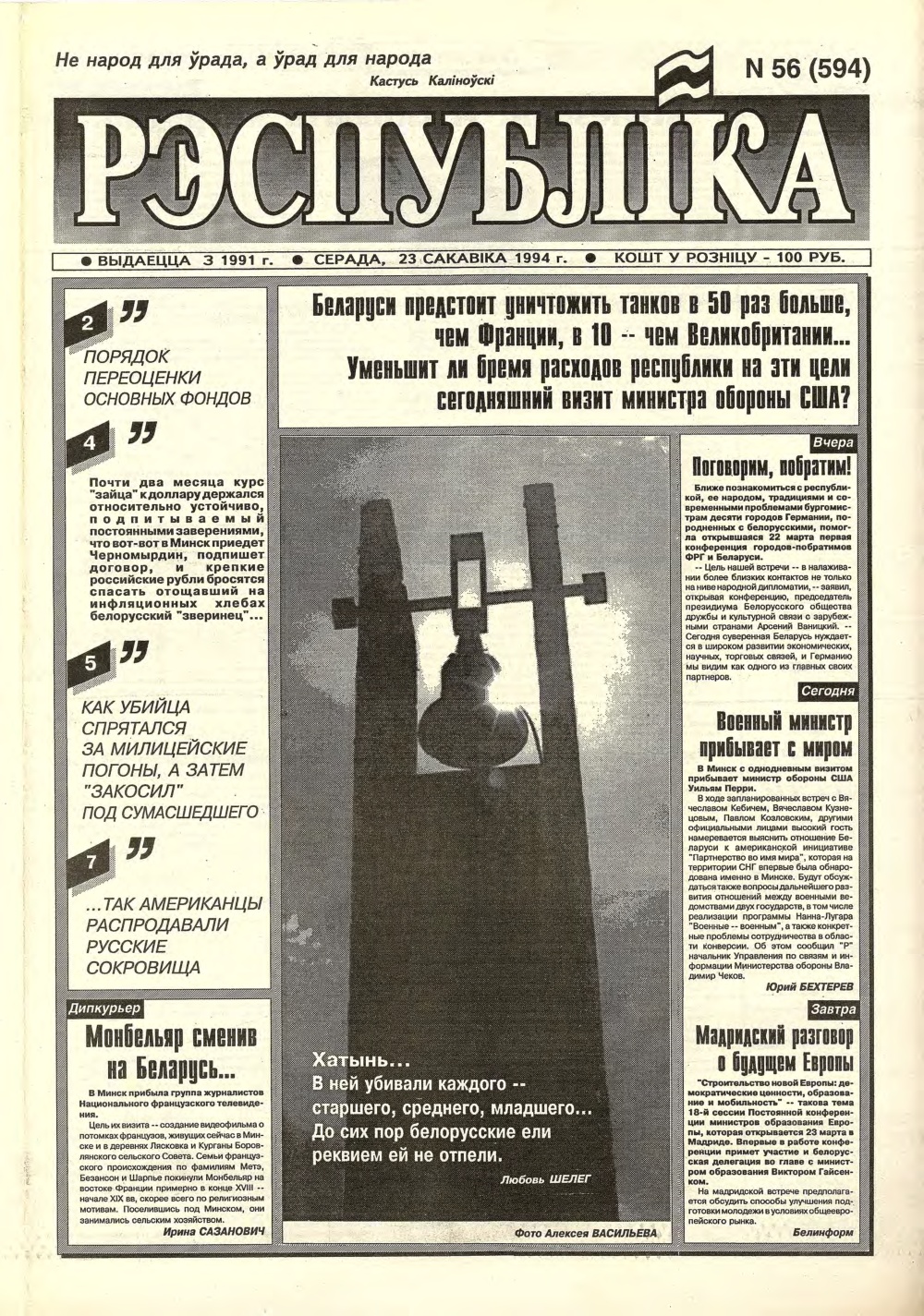 «Рэспубліка» — газета для тых, хто самастойна прымае рашэнні. Заснавальнік - Савет Міністраў Рэспублікі Беларусь. Выдаецца з чэрвеня 1991. Газета выходзіць 250 разоў у год. Аўтары апублікаваных матэрыялаў нясуць адказнасць за падбор і дакладнасць фактаў, іх меркаванні неабавязкова адлюстроўваюць пункт гледжання рэдакцыі. Рукапісы, фотаздымкі і малюнкі не рэцэнзуюцца I не вяртаюцца.