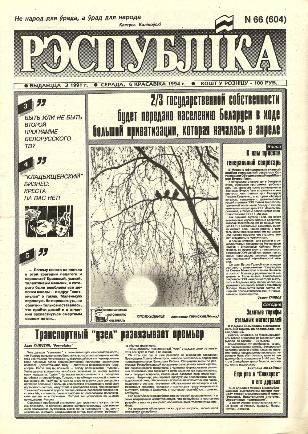 «Рэспубліка» — газета для тых, хто самастойна прымае рашэнні. Заснавальнік - Савет Міністраў Рэспублікі Беларусь. Выдаецца з чэрвеня 1991. Газета выходзіць 250 разоў у год. Аўтары апублікаваных матэрыялаў нясуць адказнасць за падбор і дакладнасць фактаў, іх меркаванні неабавязкова адлюстроўваюць пункт гледжання рэдакцыі. Рукапісы, фотаздымкі і малюнкі не рэцэнзуюцца I не вяртаюцца.