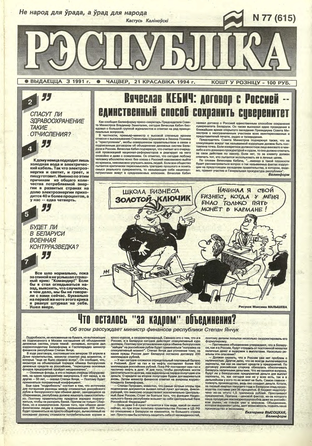 «Рэспубліка» — газета для тых, хто самастойна прымае рашэнні. Заснавальнік - Савет Міністраў Рэспублікі Беларусь. Выдаецца з чэрвеня 1991. Газета выходзіць 250 разоў у год. Аўтары апублікаваных матэрыялаў нясуць адказнасць за падбор і дакладнасць фактаў, іх меркаванні неабавязкова адлюстроўваюць пункт гледжання рэдакцыі. Рукапісы, фотаздымкі і малюнкі не рэцэнзуюцца I не вяртаюцца.