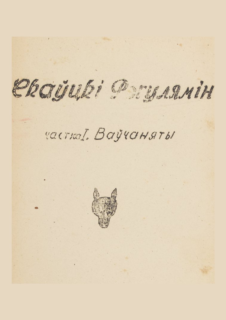 Скаўцкі рэгулямін. Частка І. Ваўчаняты. / Аўтары тэкста ды малюнкаў не адзначаныя. [Месца не адзначанае:] Выданьне Галоўнага Кіраўніцтва ЗБСЧ (Згуртаваньня Беларускіх Скаўтаў на Чужыне), 1947. - 56 стр. Стан прымальны: вокладка надарваная, на першых старонках карычневыя плямы. Скобкі не вынятыя. Памеры старонкі: 20,5 х 14,5 см.