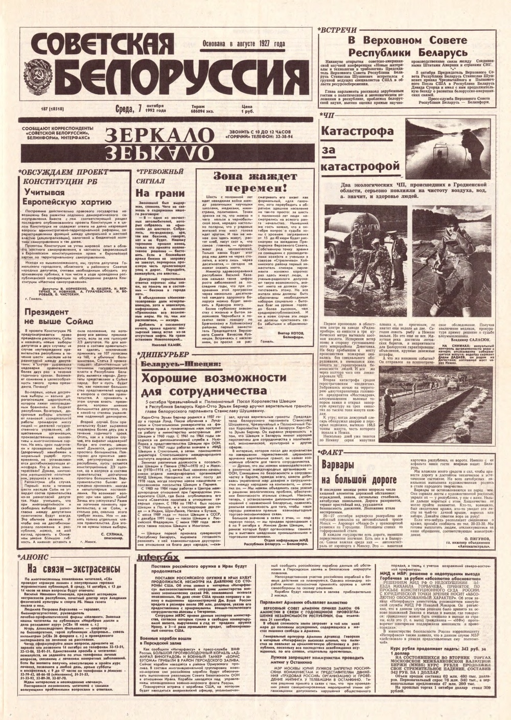 орган Центрального Комитета Коммунистической партии Белоруссии, Верховного Совета и Совета Министров БССР