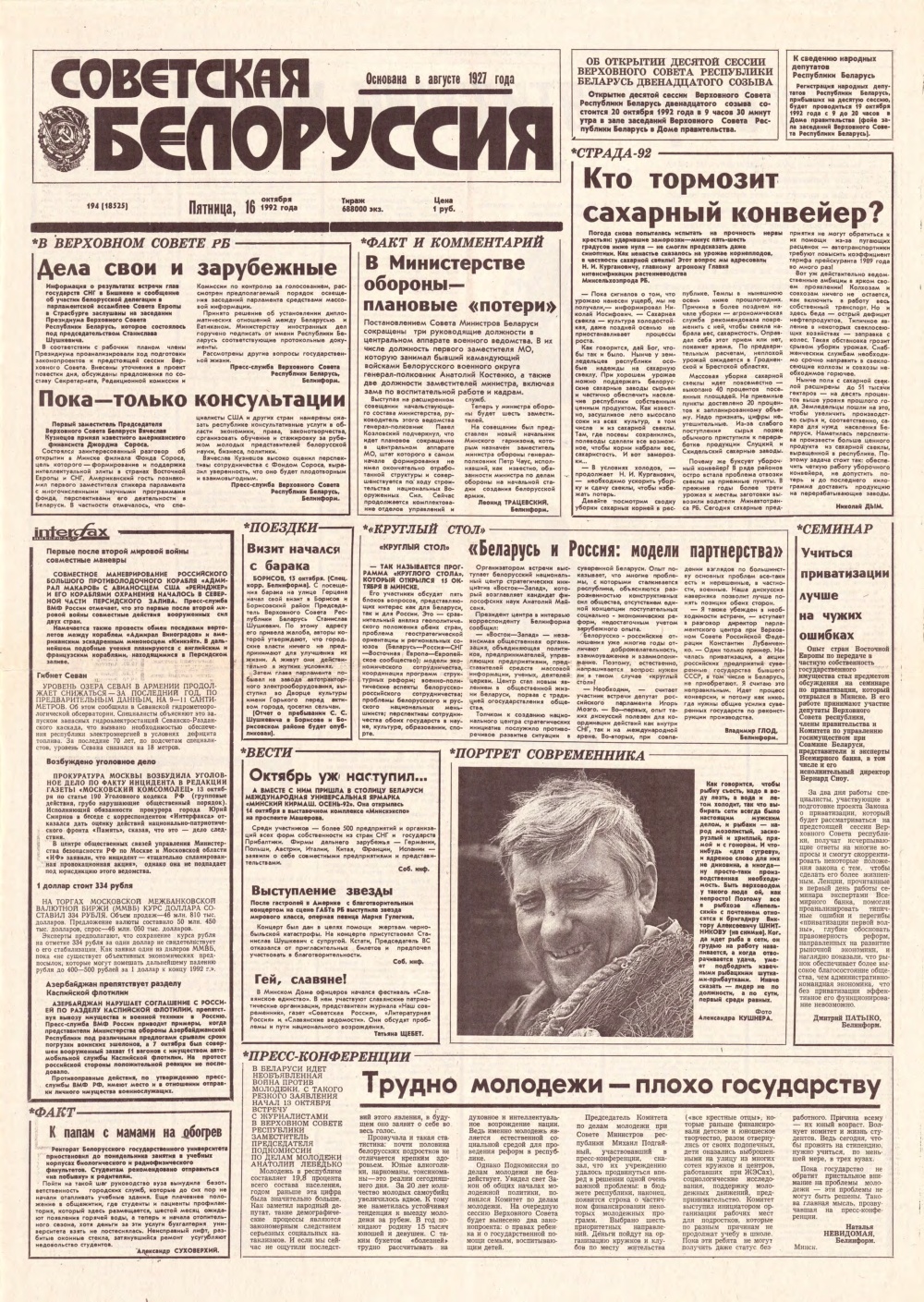 орган Центрального Комитета Коммунистической партии Белоруссии, Верховного Совета и Совета Министров БССР