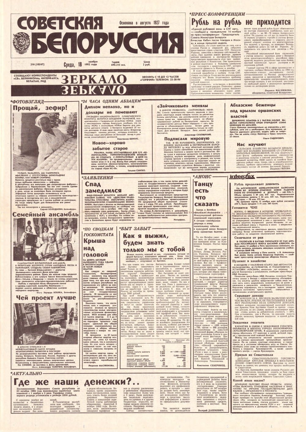 Советская Белоруссия 216 (18547) 1992