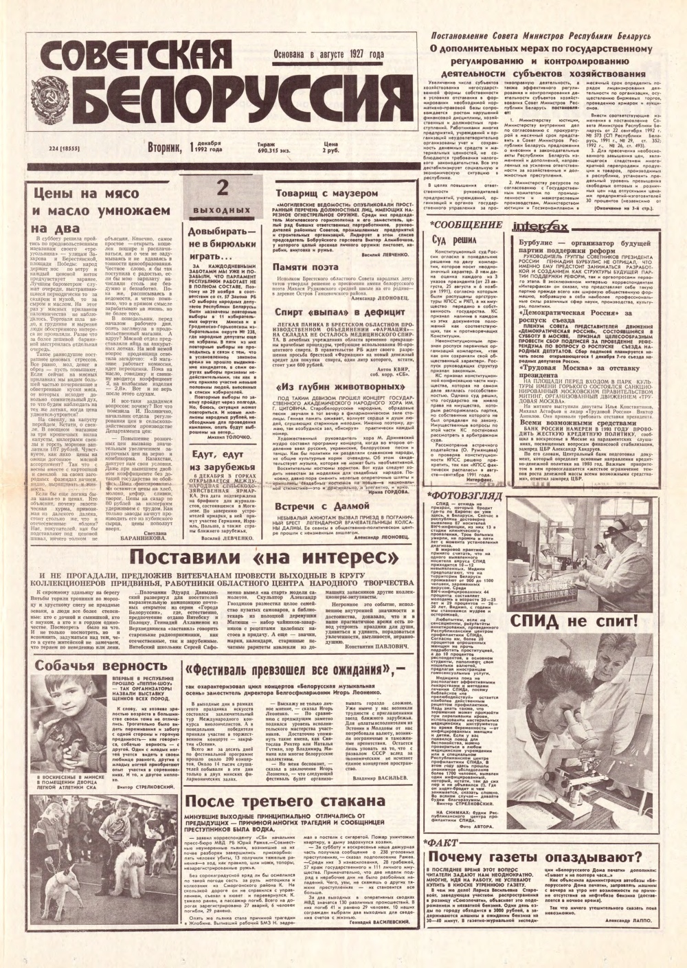 Советская Белоруссия 224 (18555) 1992