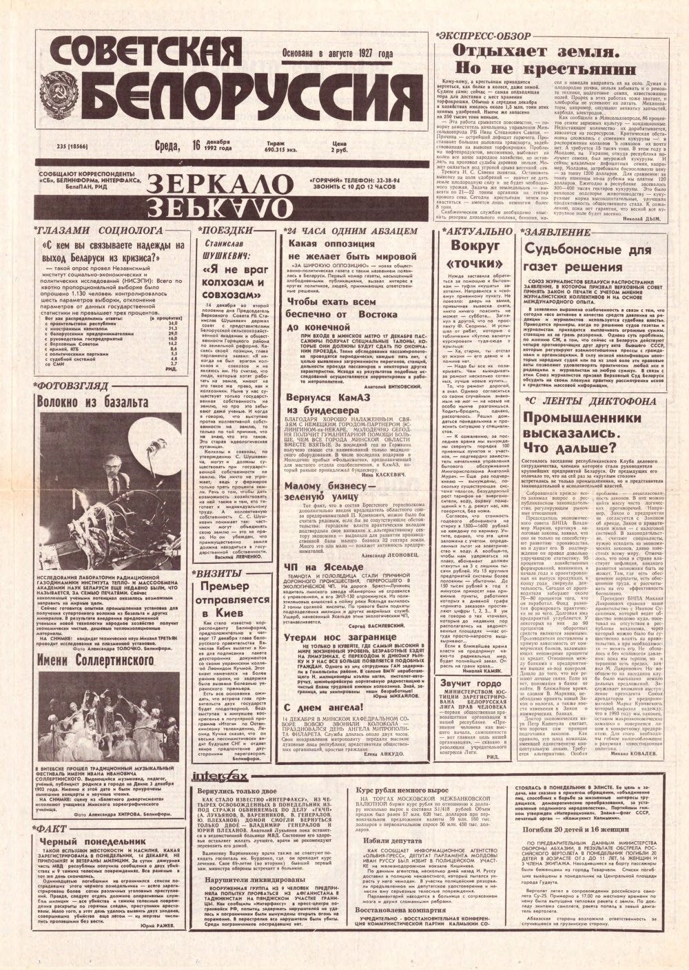 Советская Белоруссия 235 (18566) 1992