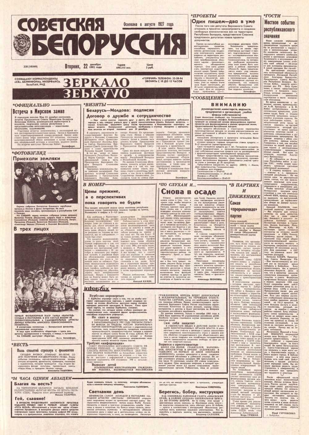 орган Центрального Комитета Коммунистической партии Белоруссии, Верховного Совета и Совета Министров БССР