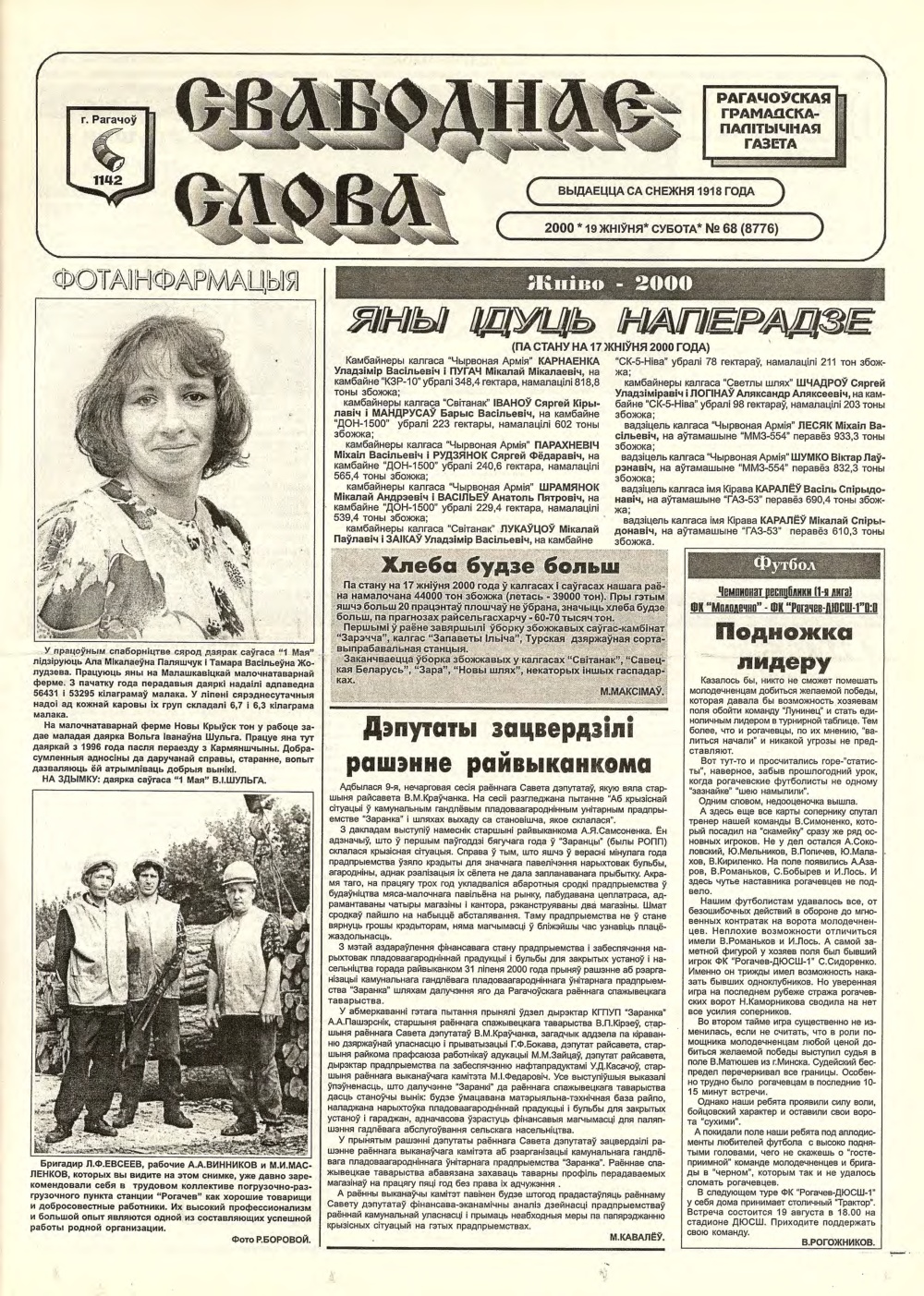 Свабоднае слова (Рагачоў) 68 (8776) 2000