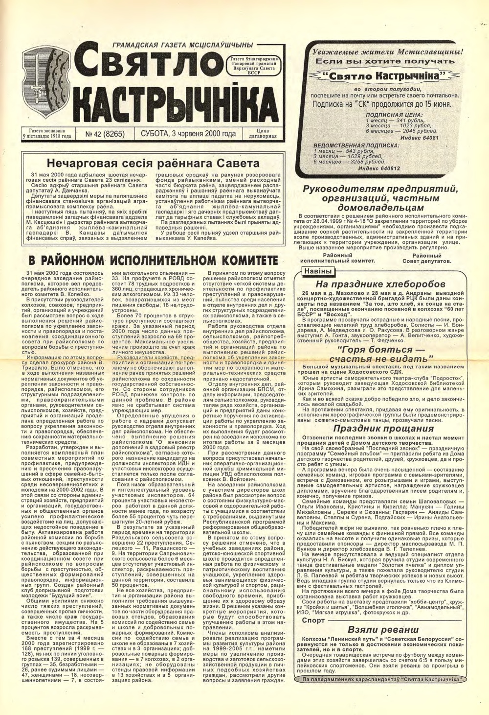 Святло кастрычніка 42 (8265) 2000