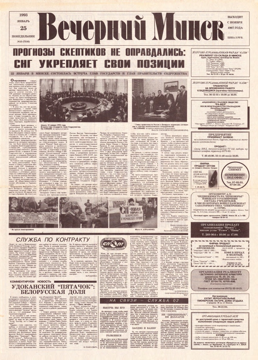 • Выдавец: трудовой коллектив редакции газеты Вечерний Минск