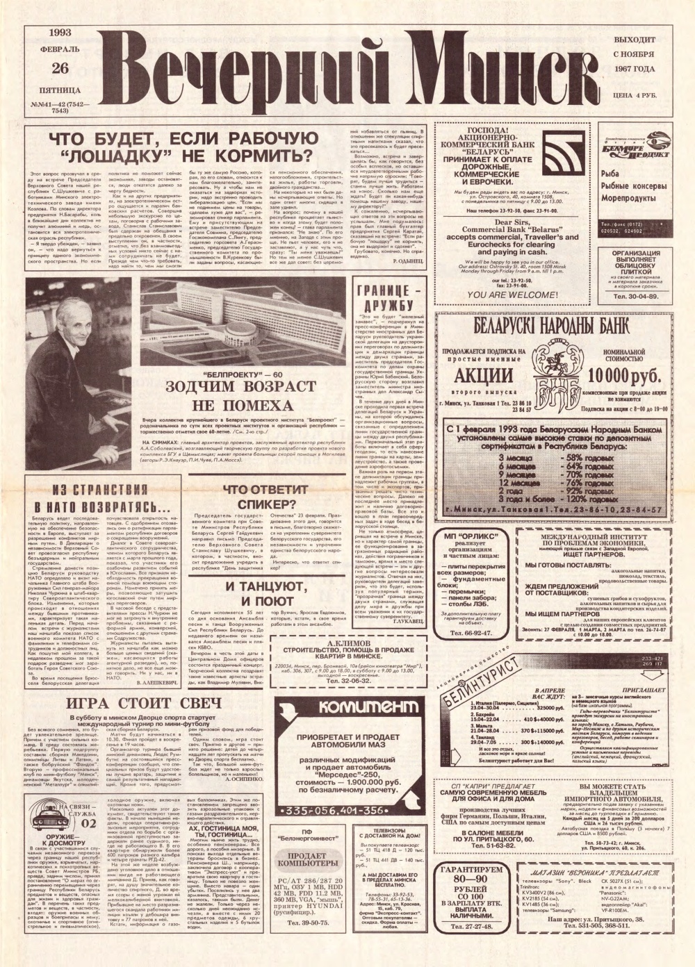 • Выдавец: трудовой коллектив редакции газеты Вечерний Минск