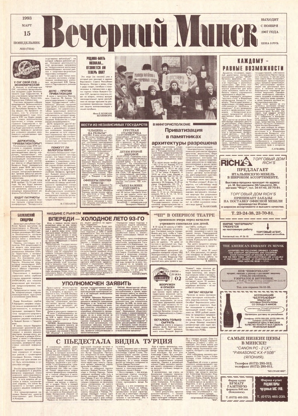 Вечерний Минск 53 (7554) 1993