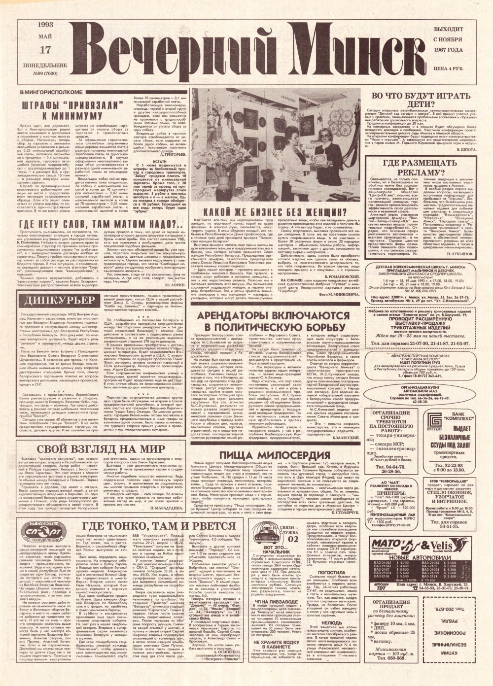 • Выдавец: трудовой коллектив редакции газеты Вечерний Минск