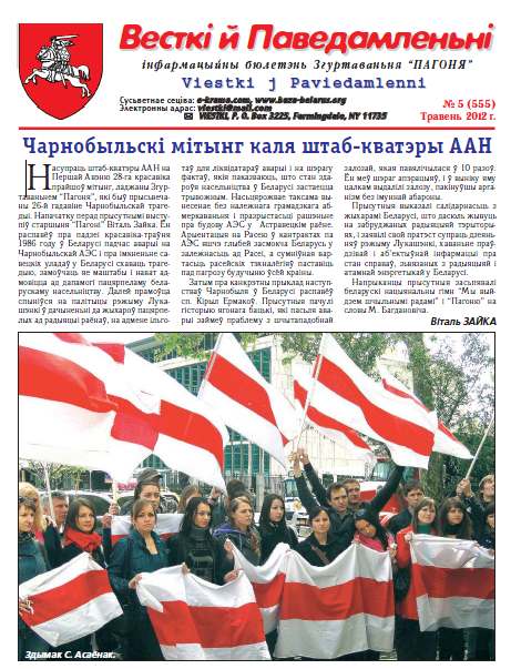 Насупраць штабкватэры ААН на Першай Авэню 28га красавіка прайшоў мітынг, ладжаны Згуртаваньнем “Пагоня”, які быў прысьвечаны 26й гадавіне Чарнобыльскай трагедыі. Напачатку перад прысутнымі выступіў старшыня “Пагоні” Віталь Зайка. Ён распавёў пра падзеі красавіка-траўня 1986 году ў Беларусі падчас аварыі на Чарнобыльскай АЭС і пра імкненьне савецкіх уладаў у Беларусі схаваць трагедыю, замоўчаць яе маштабы і нават адмовіцца ад дапамогі пацярпеламу беларускаму насельніцтву.