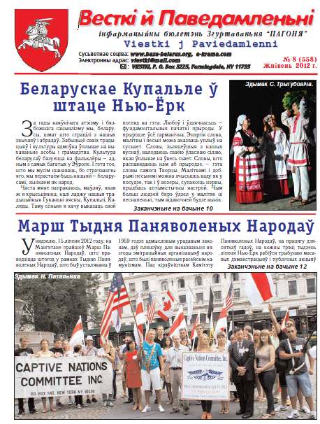 Унядзелю, 15 ліпеня 2012 году, на Мангэтане прайшоў Марш Паняволеных Народаў, што праводзіцца штогод у рамках Тыдню Паняволеных Народаў, што быў усталяваны ў 1959 годзе адмысловым урадавым законам, даў пляцоўку для выказваньня нязгоды эміграцыйных арганізацыяў народаў, што былі паняволеныя расейскім камунізмам. Пад кіраўніцтвам Камітэту Паняволеных Народаў, на працягу дзясяткаў гадоў, на кожны трэці тыдзень ліпеня НьюЁрк рабіўся трыбунаю масавых дэманстрацыяў і публічных акцыяў