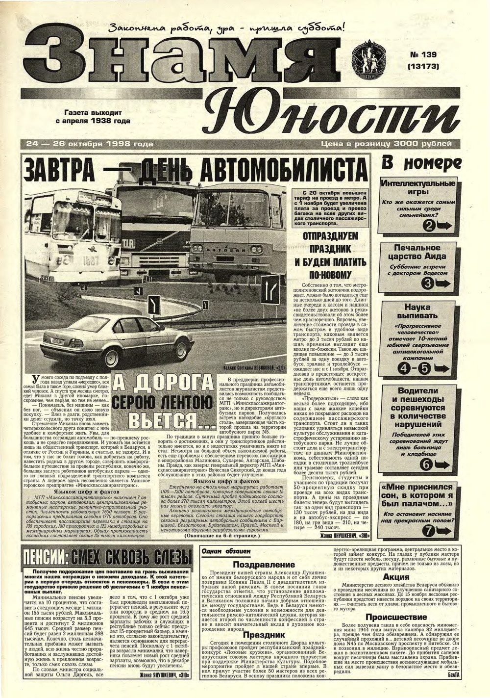 «Знамя юности» — общественно-политическая газета Белоруссии. Газета образована в 1938 году как совместный печатный орган Центрального комитета и Минского областного комитета ЛКСМ Белоруссии. Первый номер вышел 10 апреля 1938 года. Называлась газета «Сталинская молодёжь». Учредителем газеты с 1956 года являлся ЦК ЛКСМ Белоруссии. В годы Великой Отечественной войны газета выходила на одном из фронтов Красной Армии в виде листовки формата А4. Первый полноформатный послевоенный номер газеты «Сталинская молодёжь» вышел 6 июля 1945 года. В июне 1956 года газета «Сталинская молодёжь» переименована в газету «Знамя юности». Крыніца: ru.wikipedia.org