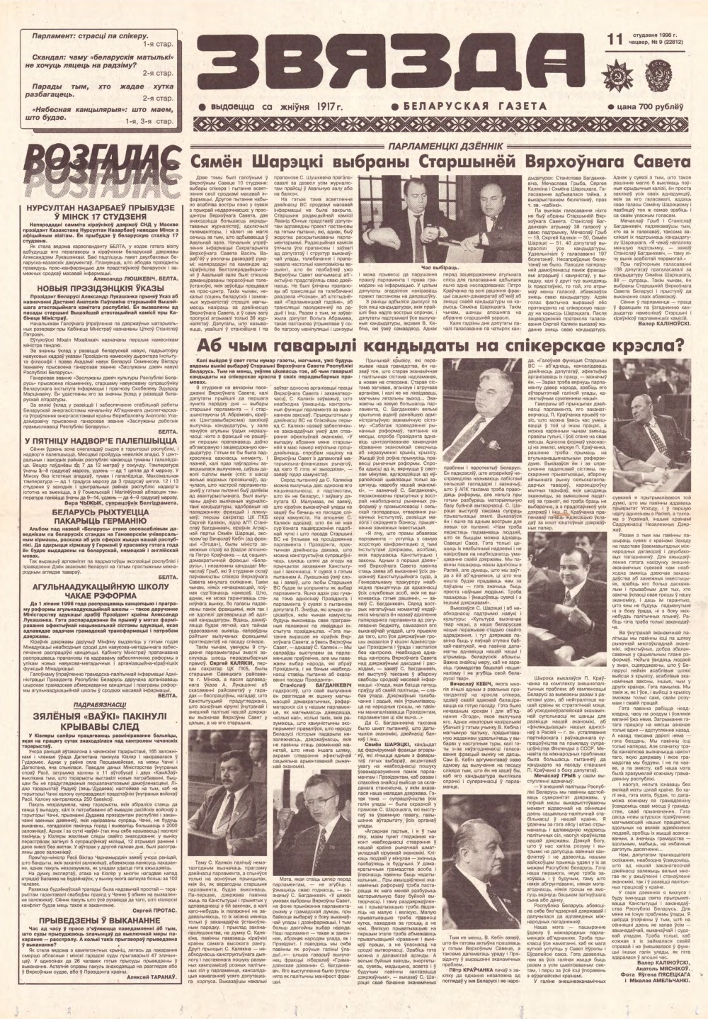 «Звязда» — орган Цэнтральнага Камітэта Камуністычнай партыі Беларусі, Вярхоўнага Савета і Савета Міністраў Беларускай ССР. Выходзіць 250 разоў на год. Аўтары апублікаваных матэрыялаў нясуць адказнасць за падбор і дакладнасць фактаў. Іх меркаванні неабавязкова адлюстроўваюць пункт гледжання рэдакцыі.